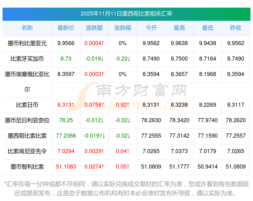 30墨西哥比索兌換捷克幣結(jié)匯行情 墨西哥比索匯率報(bào)價(jià)查詢(xún)2025-11-11