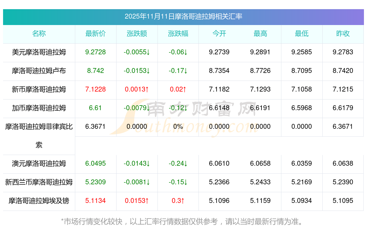 2025年11月11日摩洛哥迪拉姆相關(guān)匯率查詢