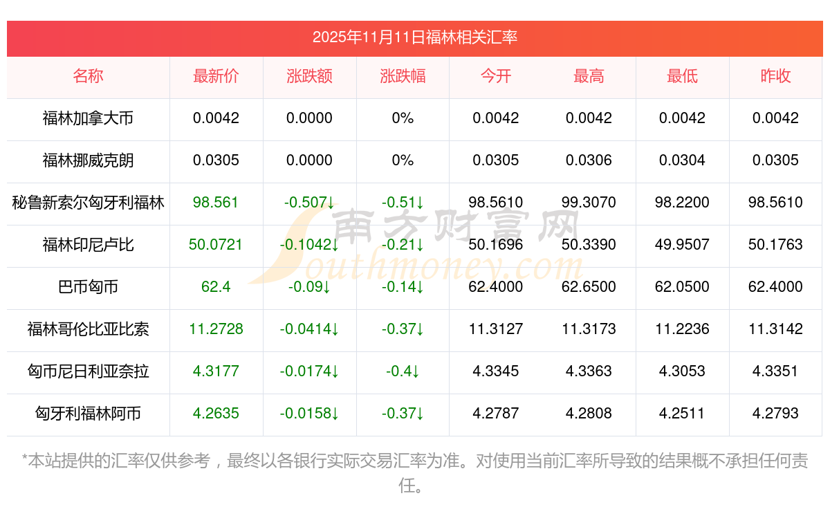 根據(jù)2025年11月11日匯率,福林兌換印尼盧比匯率最新價(jià)50.072100,今開(kāi)價(jià)50.1696,昨收價(jià)50.1763,最高價(jià)50.3390,最低價(jià)49.9507。