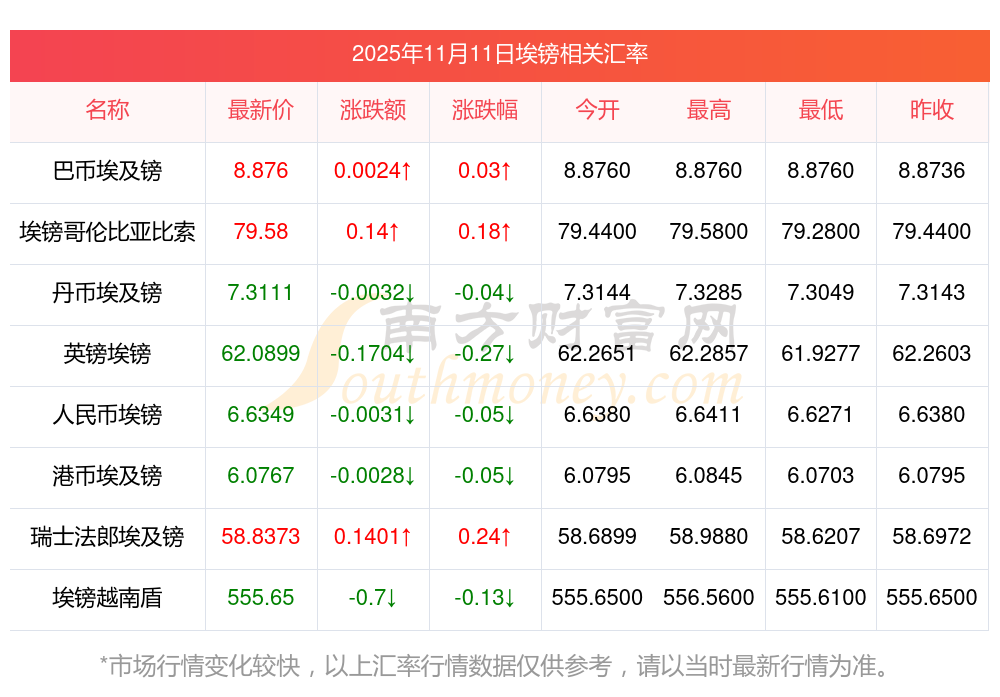 2025年11月11日埃鎊相關(guān)匯率查詢