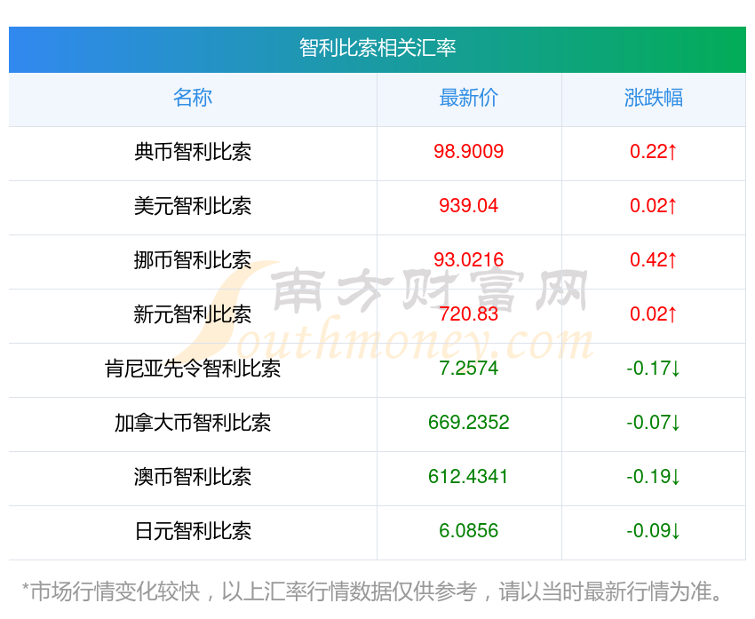 南方財富網(wǎng)為您提供智利比索對摩洛哥迪拉姆匯率最新價格詳情。