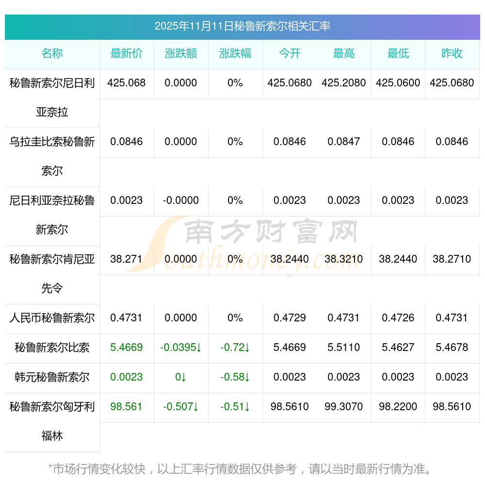 2025年11月11日秘魯新索爾相關(guān)匯率查詢
