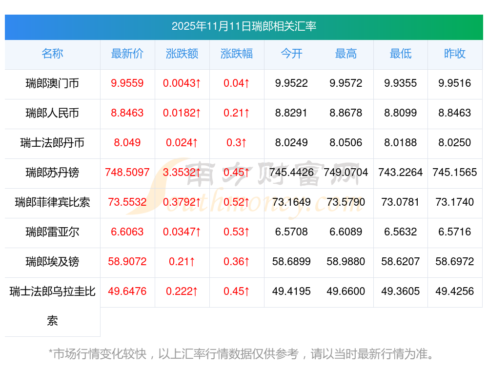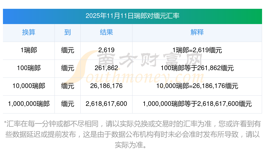今日瑞郎匯率多少?_瑞郎對緬元匯率查詢2025/11/11
