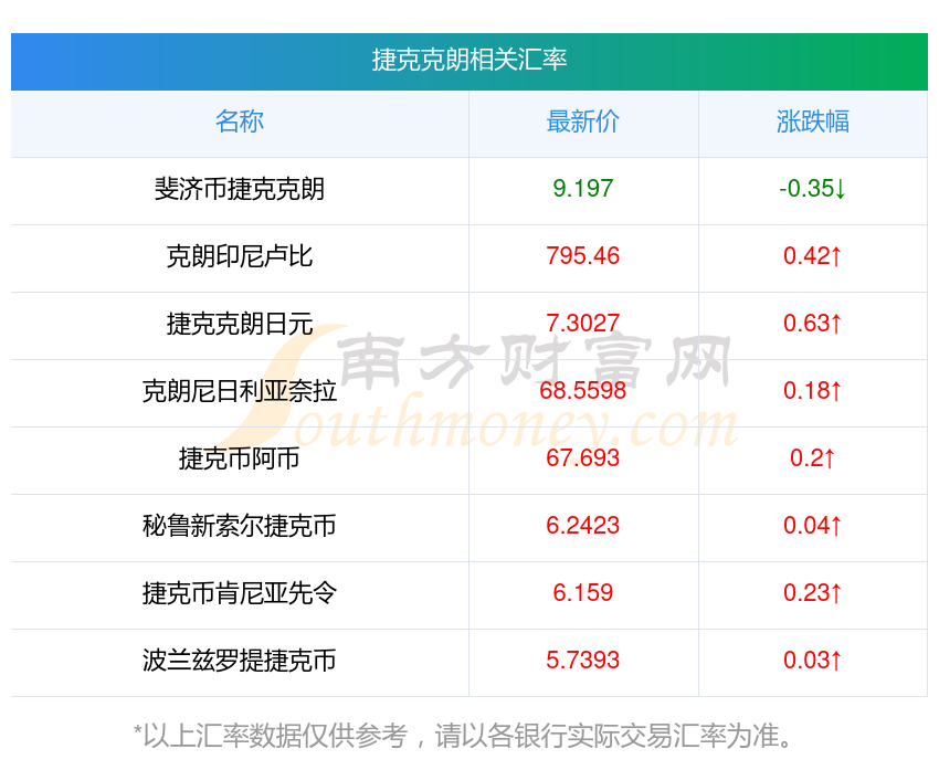 南方財富網(wǎng)為您提供捷克克朗對新元匯率最新價格詳情。