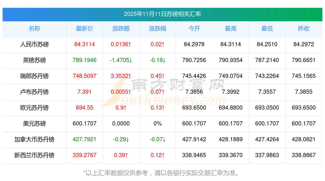 2025年11月11日蘇磅相關(guān)匯率查詢