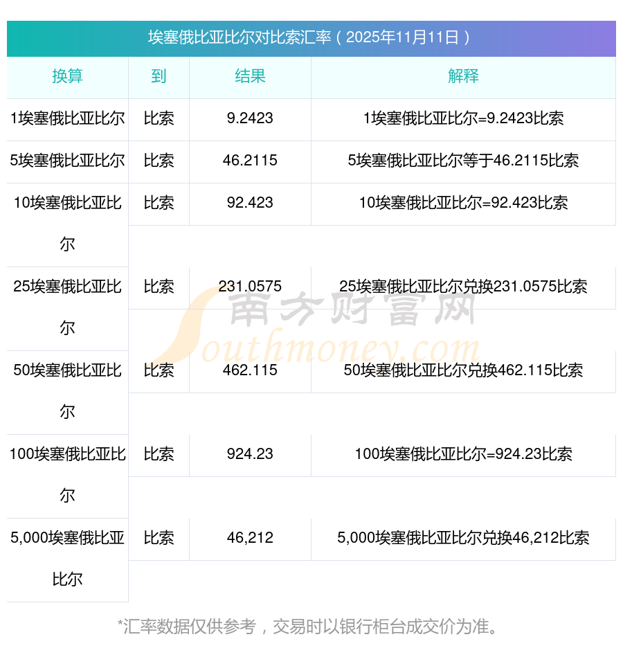 今日埃塞俄比亞比爾與比索結(jié)匯多少?埃塞俄比亞比爾對比索匯率查詢11-11