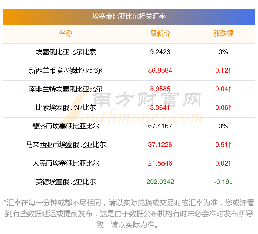 南方財(cái)富網(wǎng)為您提供埃塞俄比亞比爾對比索匯率最新價格詳情。