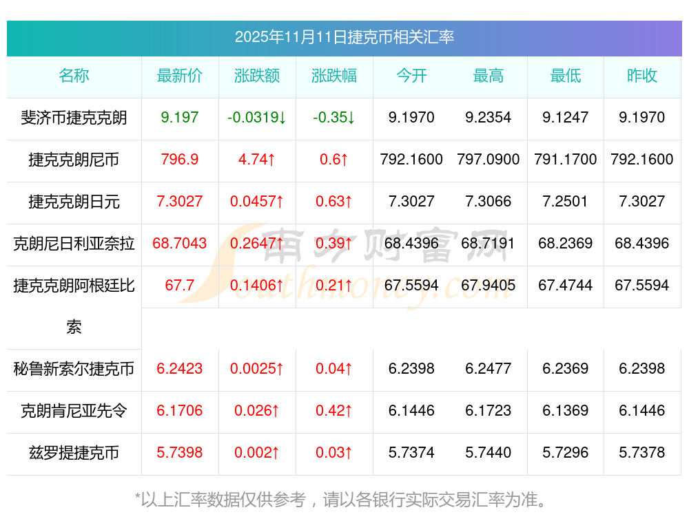 2025年11月11日捷克幣相關(guān)匯率查詢