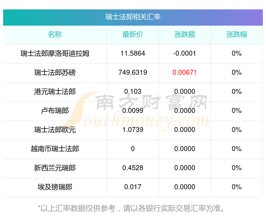 2025年11月12日瑞士法郎相關(guān)匯率查詢