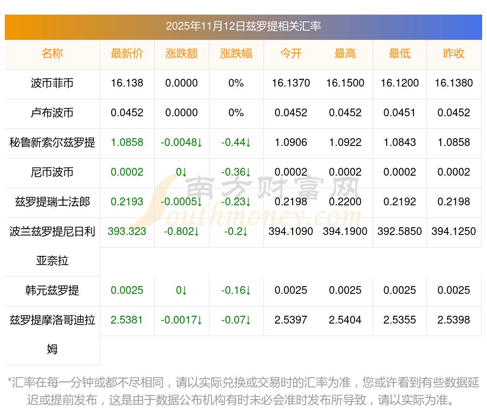 南方財富網(wǎng)為您提供茲羅提對美金匯率最新價格詳情。