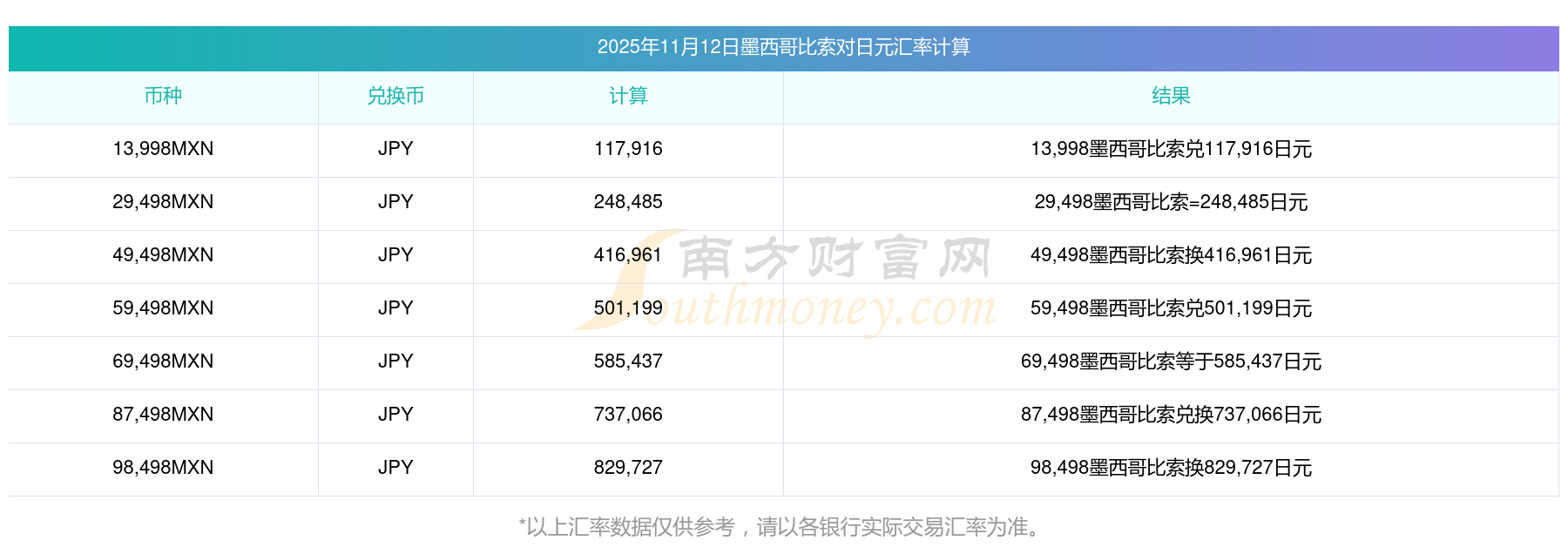 今天墨西哥比索查詢:2墨西哥比索對日元匯率是多少?2025-11-12