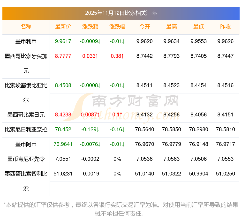 根據(jù)今天2025年11月12日匯率計算,MXN兌換ZAR匯率最新價0.936920,今開價0.9365,昨收價0.9367,最高價0.9376,最低價0.9361。