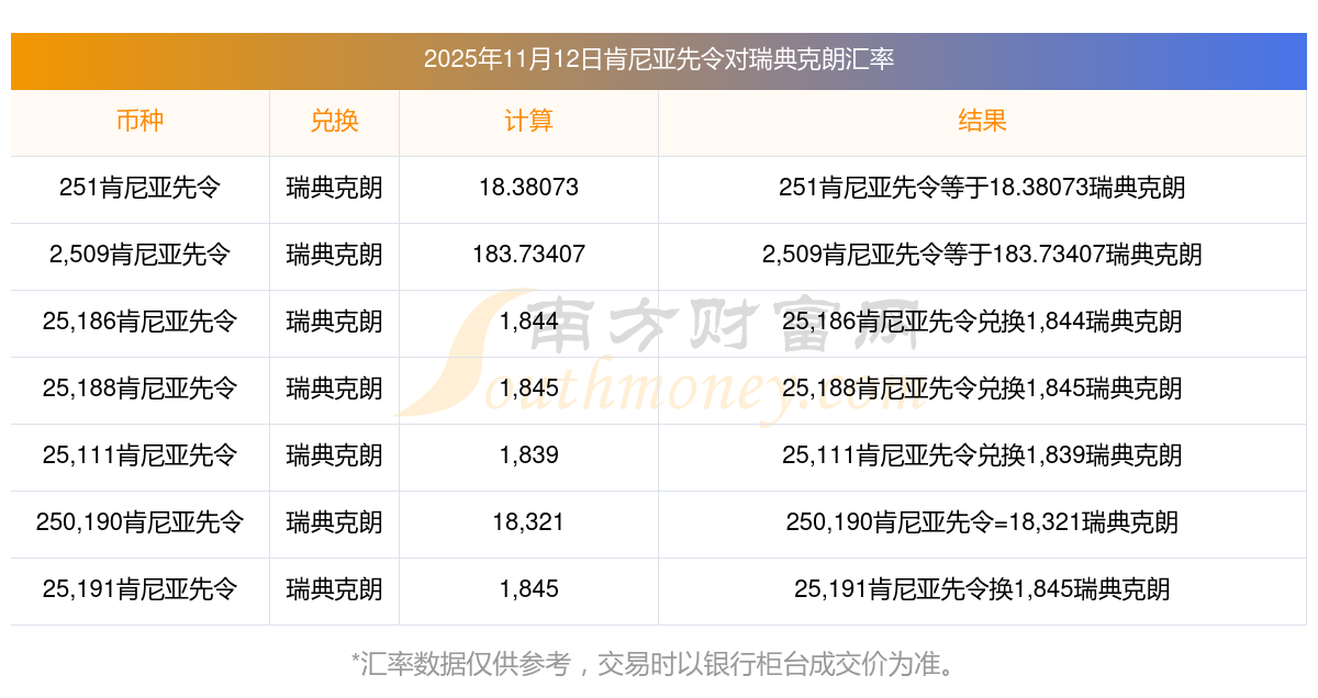 南方財(cái)富網(wǎng)為您提供肯尼亞先令對(duì)瑞典克朗匯率最新價(jià)格詳情。