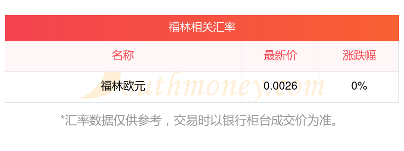 2025年11月12日福林兌換歐元最新匯率:0.002598,今開:0.0026,昨收:0.0026,最高:0.0026,最低:0.0026。