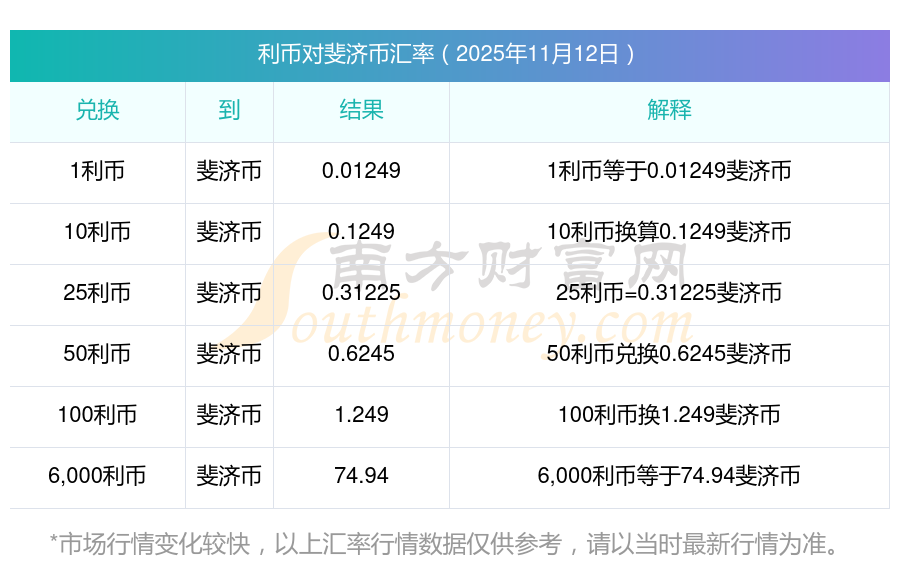 今日利幣對(duì)斐濟(jì)幣匯率計(jì)算查詢2025-11-12