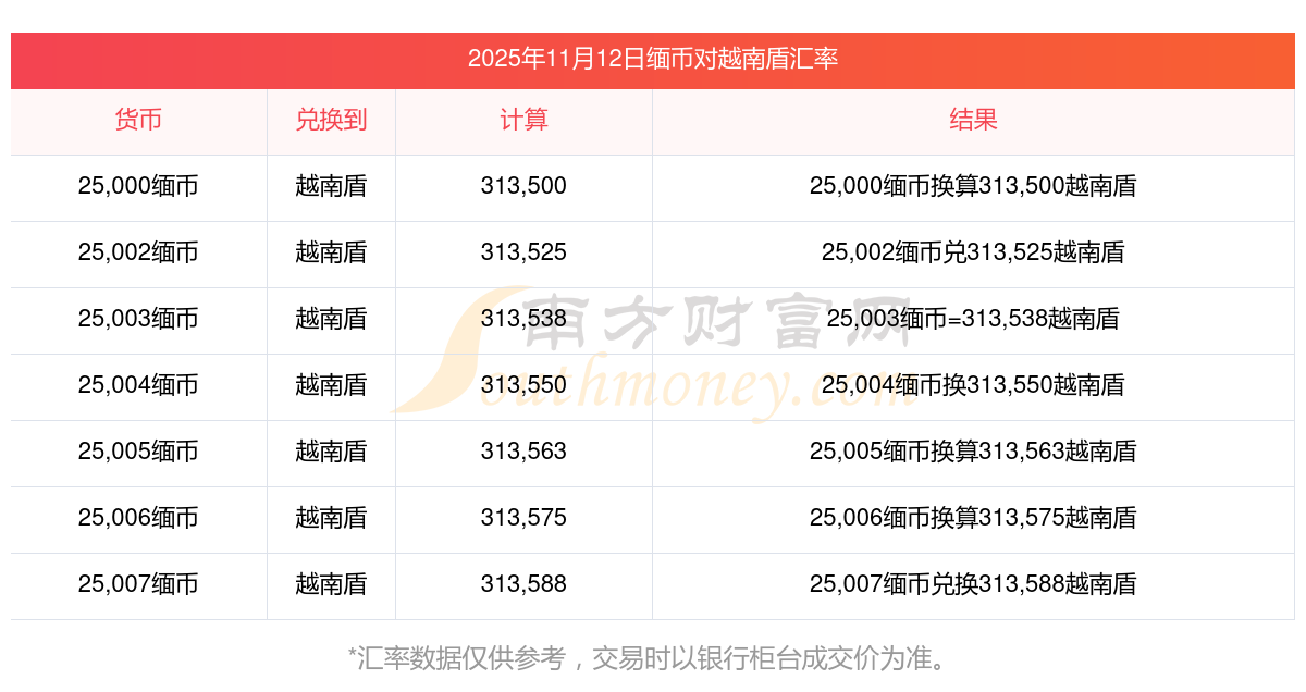 南方財富網(wǎng)為您提供緬幣對越南盾匯率最新價格詳情。