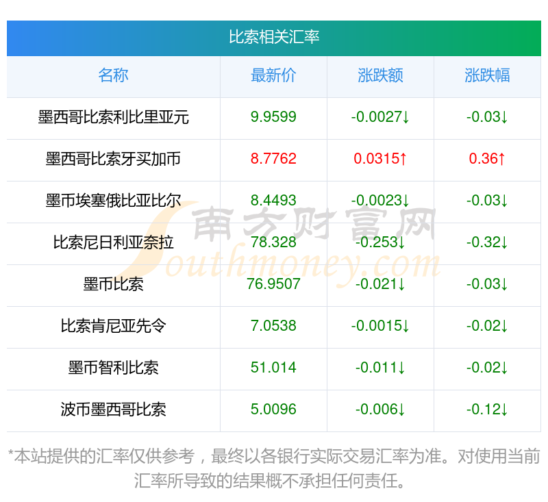 南方財富網(wǎng)為您提供比索對埃鎊匯率最新價格詳情。