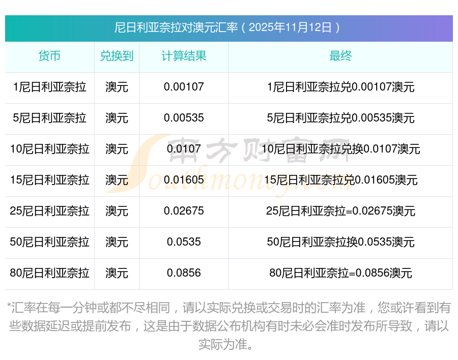28尼日利亞奈拉兌換澳元是多少2025年11月12日