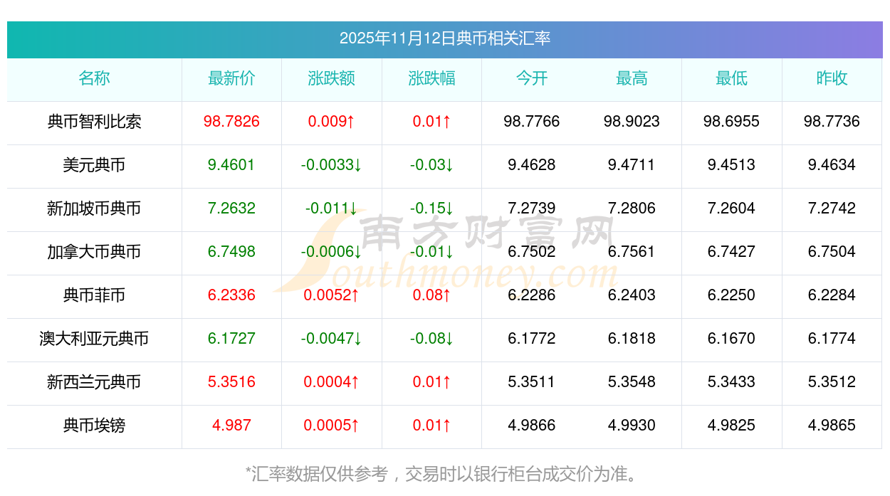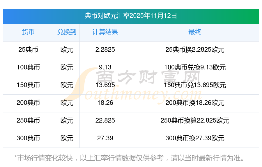 兌換外匯如何查詢?典幣兌換歐元的折算率多少2025年11月12日