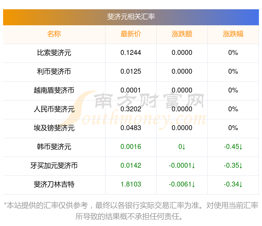 南方財富網(wǎng)為您提供斐濟元對阿根廷比索匯率最新價格詳情。