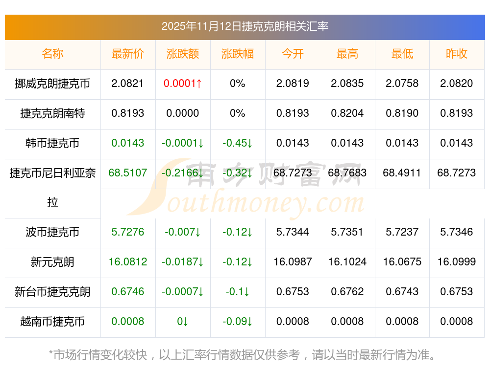 2025年11月12日捷克克朗相關(guān)匯率查詢