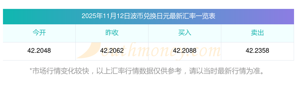 今天波幣對日元匯率多少?今日匯率計算方法2025年11月12日