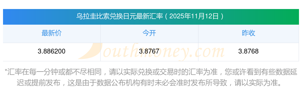 2025/11/12匯率調(diào)整 今天1烏拉圭比索等于多少日元?