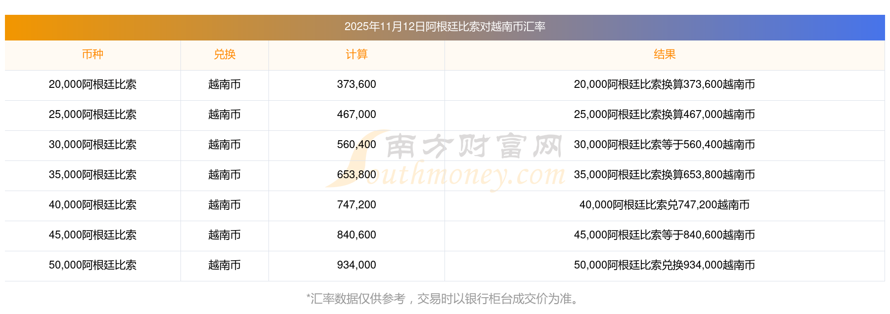 今日匯率的行情:阿根廷比索對(duì)越南幣匯率(2025年11月12日)