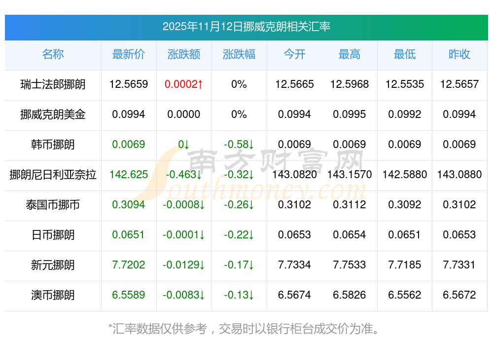 2025年11月12日挪威克朗相關(guān)匯率查詢