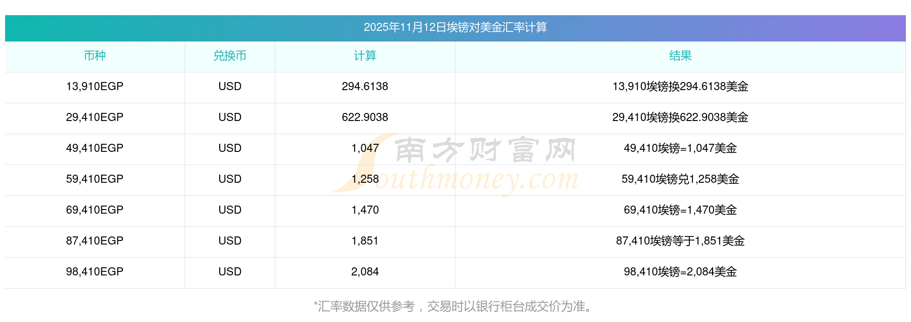 埃鎊兌換美金最新匯率(2025年11月12日)