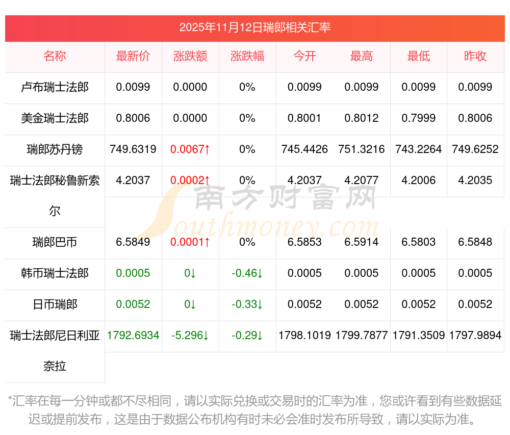 2025年11月12日瑞郎相關(guān)匯率查詢