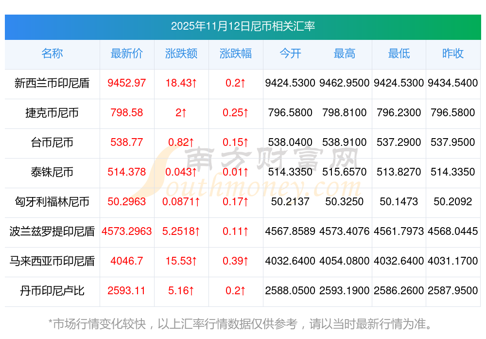 根據(jù)2025年11月12日匯率,尼幣兌換埃塞俄比亞比爾匯率最新價0.009257,今開價0.0093,昨收價0.0093,最高價0.0093,最低價0.0093。