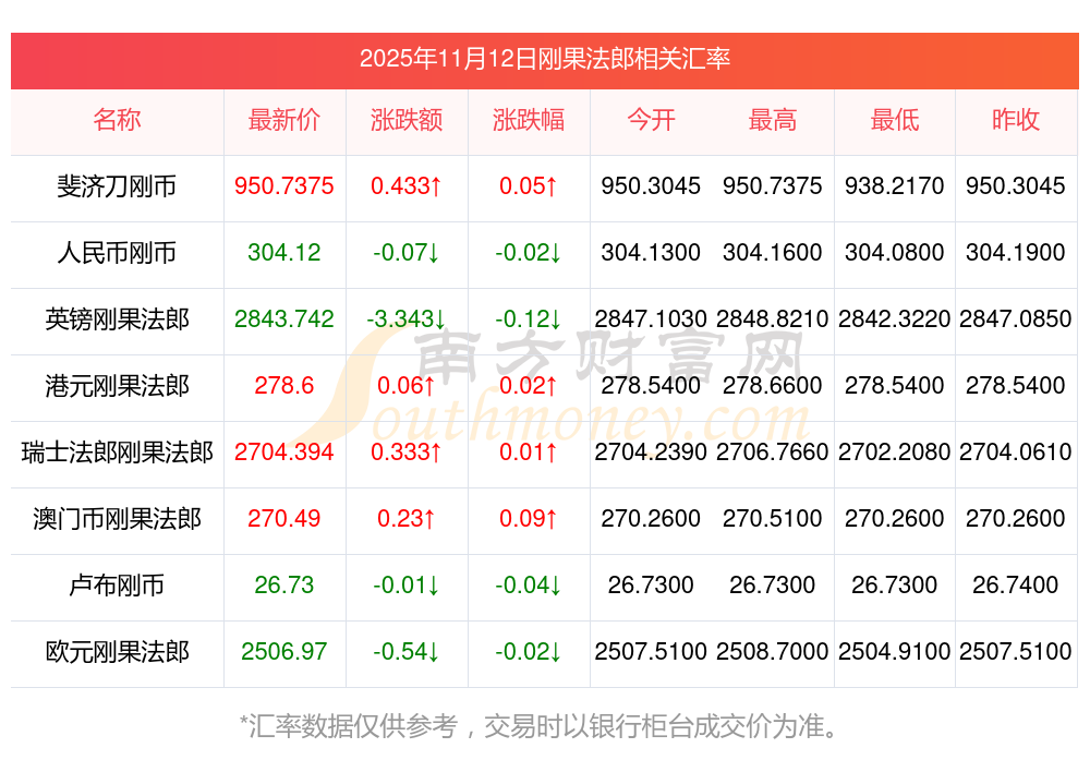 2025年11月12日剛果法郎相關(guān)匯率查詢