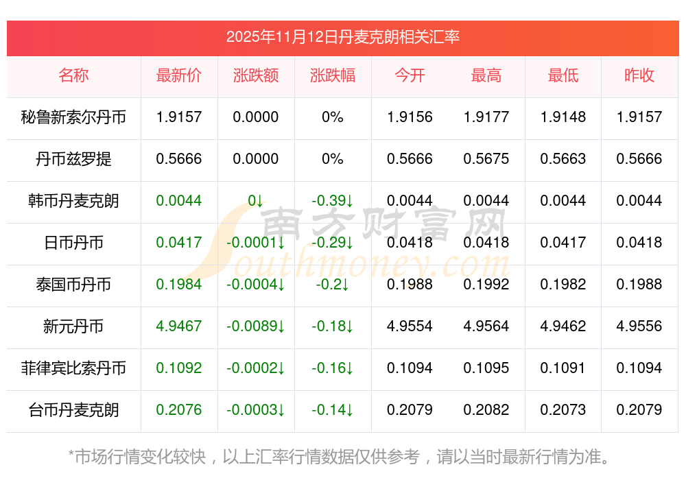 2025年11月12日丹麥克朗相關(guān)匯率查詢