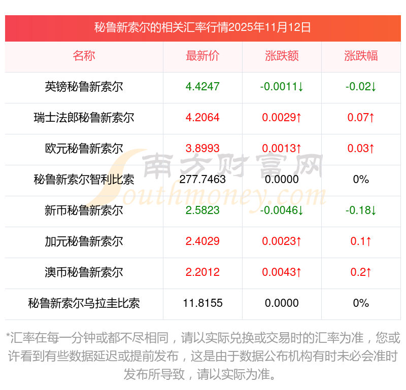 2025年11月12日秘魯新索爾相關(guān)匯率查詢