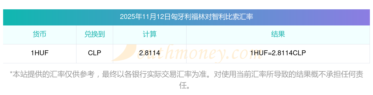 今天100匈牙利福林對(duì)智利比索匯率是多少_匯率實(shí)時(shí)查詢(11月12日)