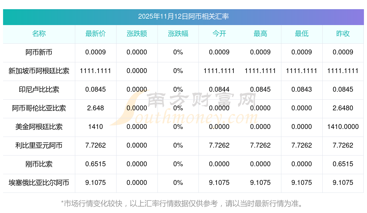 2025年11月12日阿幣相關(guān)匯率查詢