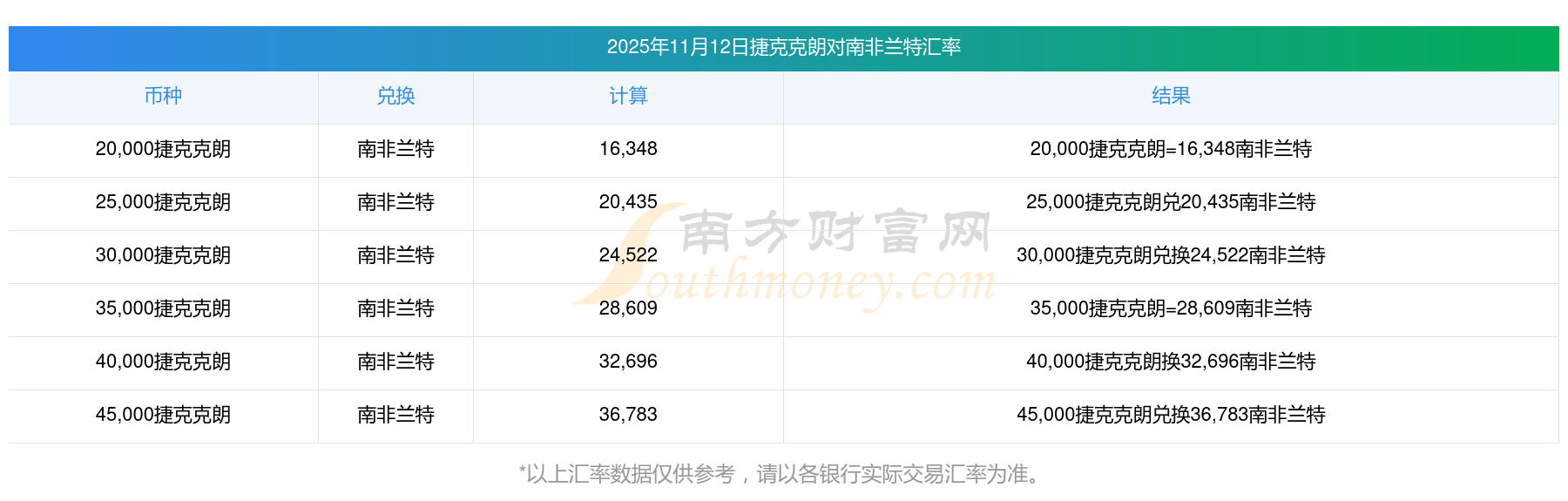 今天捷克克朗轉(zhuǎn)換南非蘭特匯率報價_怎么查詢 2025/11/12