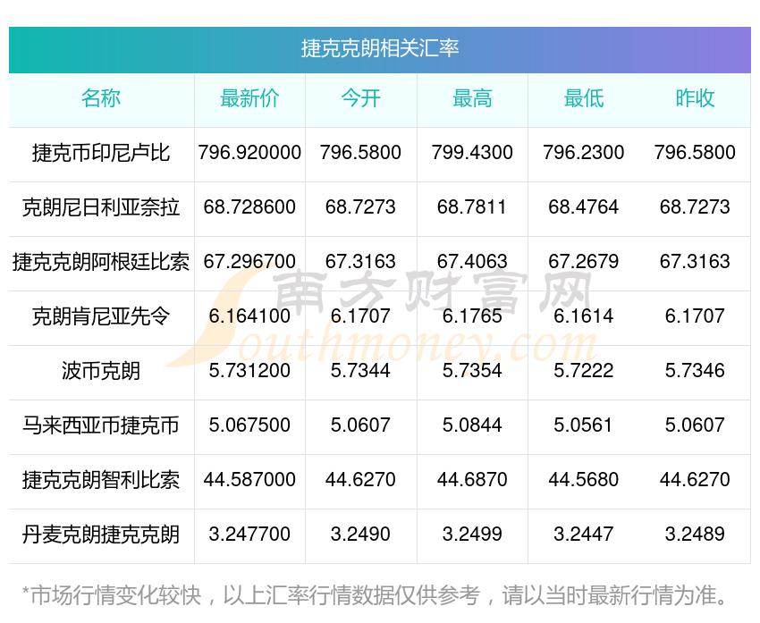 南方財富網(wǎng)為您提供捷克克朗對南非蘭特匯率最新價格詳情。