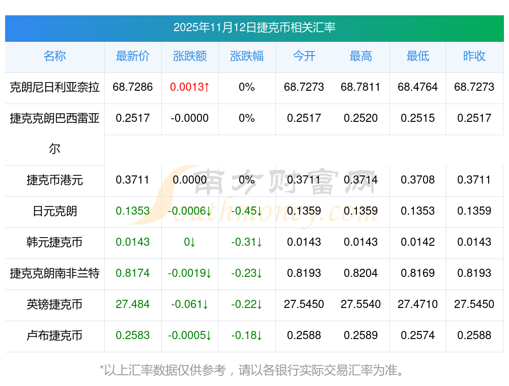 2025年11月12日捷克幣相關(guān)匯率查詢
