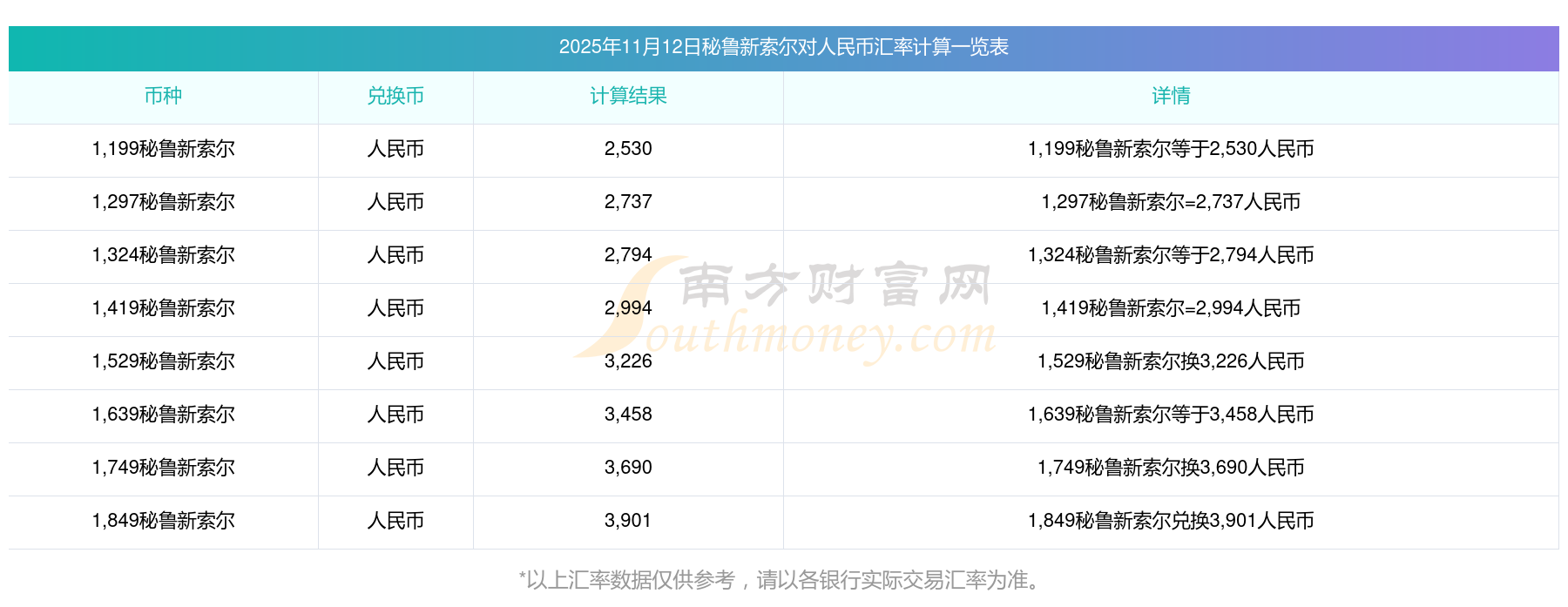 今天24兌換 | 將秘魯新索爾轉(zhuǎn)換為人民幣匯率多少? 11月12日