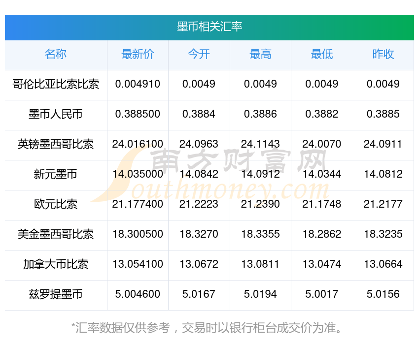南方財富網(wǎng)為您提供墨幣對新西蘭幣匯率最新價格詳情。
