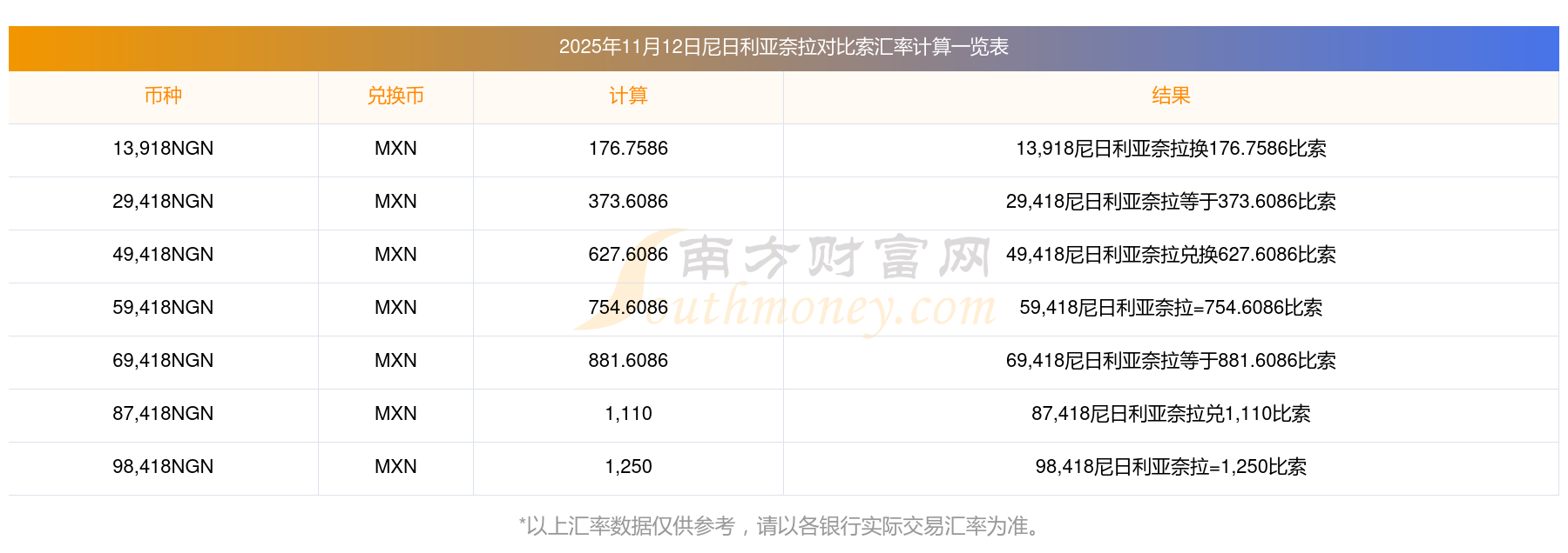 新匯率調整 今天6尼日利亞奈拉兌換比索匯率是多少? 2025年11月12日
