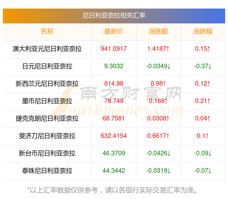 南方財富網(wǎng)為您提供尼日利亞奈拉對比索匯率最新價格詳情。