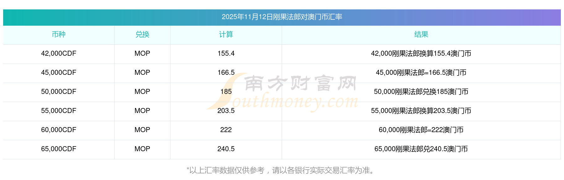 2025年11月12日2剛果法郎計(jì)算澳門幣等于多少?