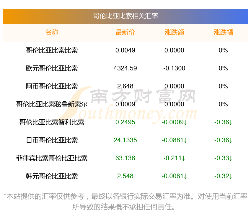 2025年11月12日哥倫比亞比索相關(guān)匯率查詢
