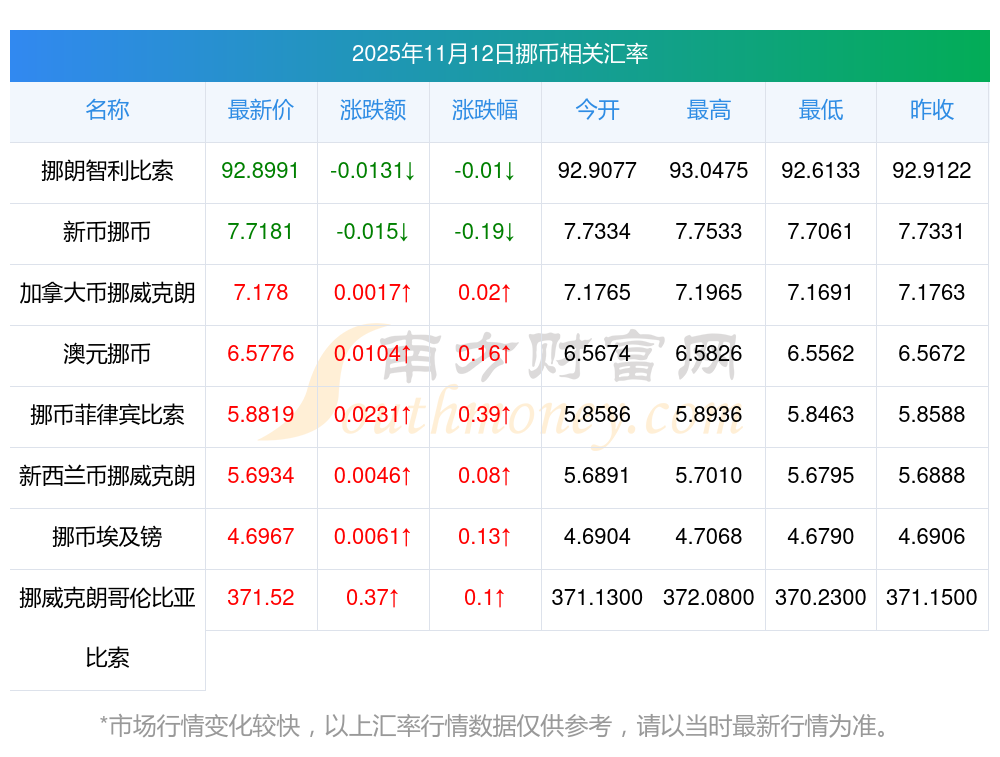 根據(jù)2025年11月12日匯率,挪幣兌換埃及鎊匯率最新價4.696700,今開價4.6904,昨收價4.6906,最高價4.7068,最低價4.6790。