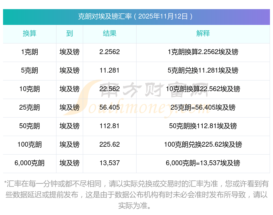 南方財富網(wǎng)為您提供克朗對埃及鎊匯率最新價格詳情。