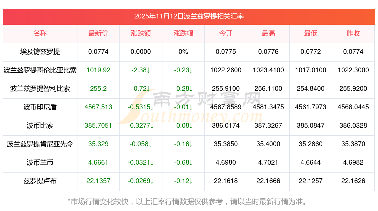 2025年11月12日波蘭茲羅提相關(guān)匯率查詢