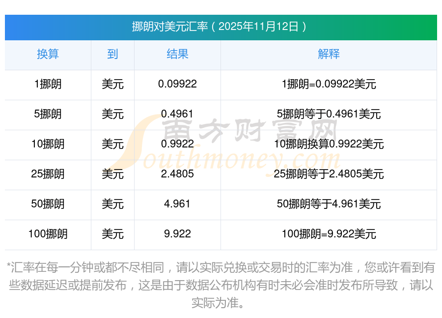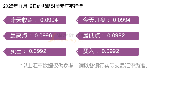 最新挪朗對(duì)美元匯率是多少?